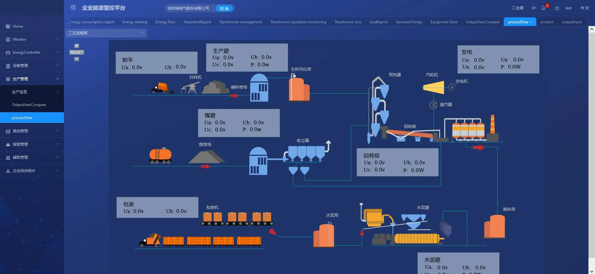 ◆ Real-time monitoring of energy: Real-time monitoring of water, electricity, gas and other energy consumption to ensure the safe, continuous and stable operation of energy-consuming links, and display power distribution diagrams, energy flow diagrams, energy balance network diagrams, energy metering network diagrams and other functions.