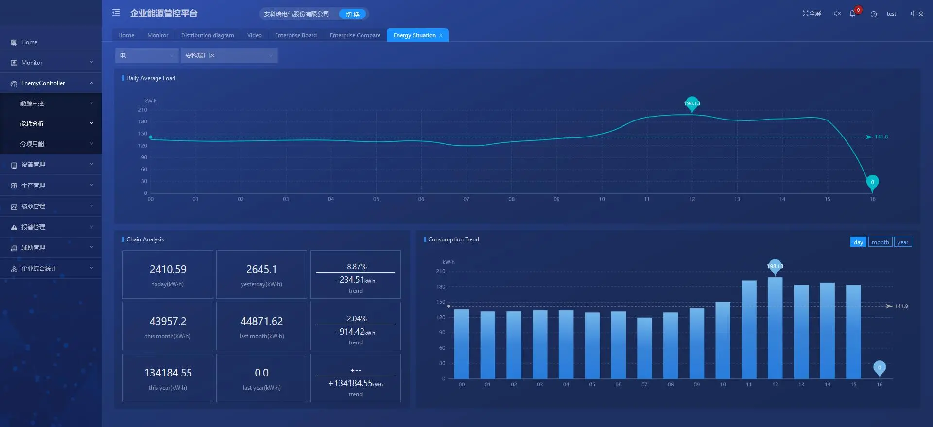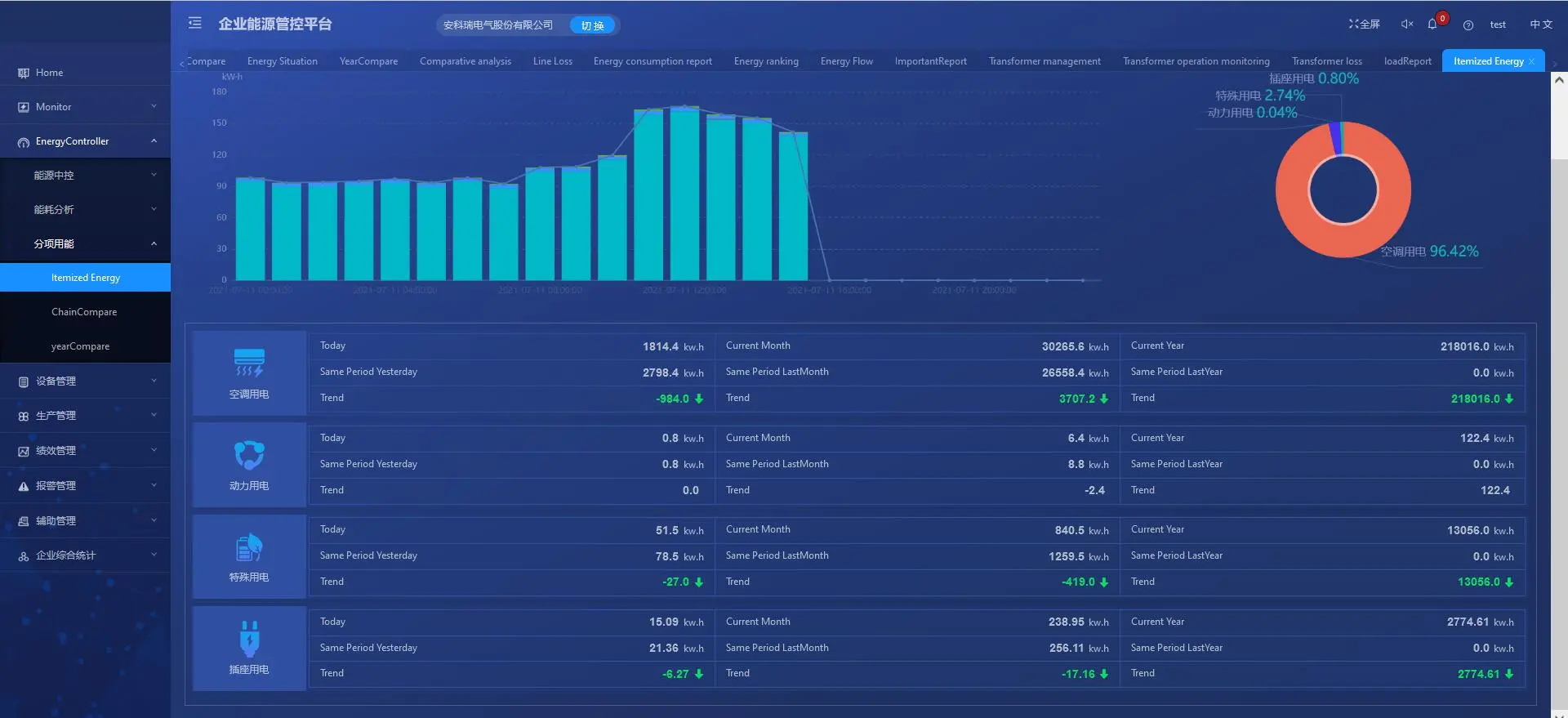 ■ Real-time statistics: Real-time statistics of the energy consumption values of factories, workshops, processes, and equipment for the year, quarter, month, week, day, and shift;