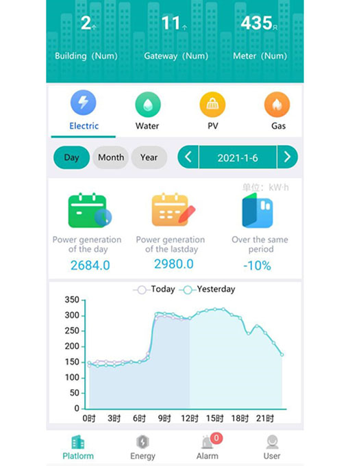 ■ Energy flow diagram: It is necessary to display the consumption of water, electricity and gas in real time on the energy flow diagram; when the energy parameters exceed the limit alarm, it can provide alarm importance level classification, and support APP push alarm reminder, SMS alarm reminder, Email, voice alarm prompt, etc.;